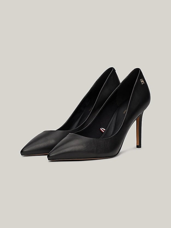 Ženske crne Tommy Hilfiger kožne štikle na špic