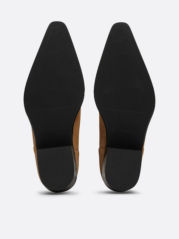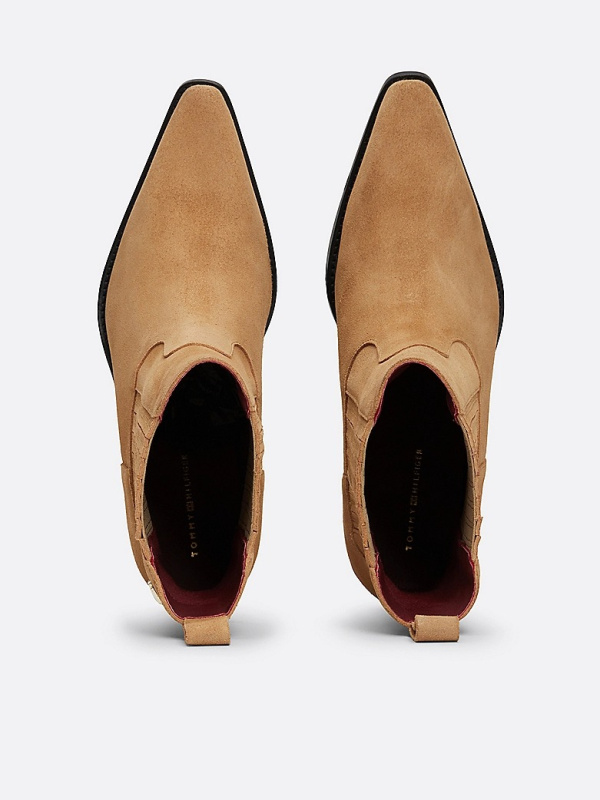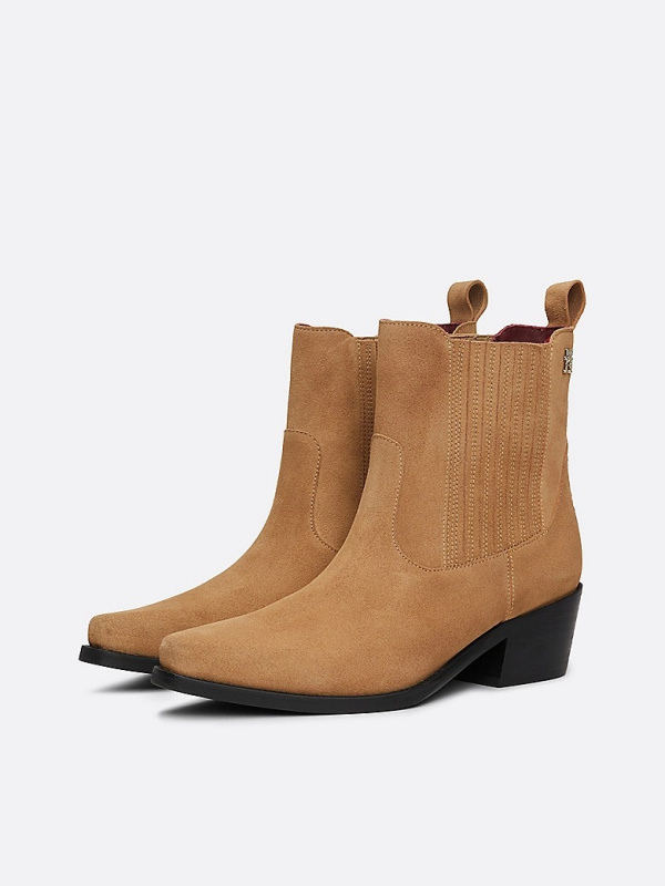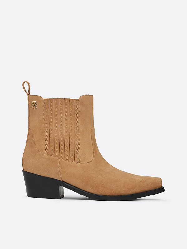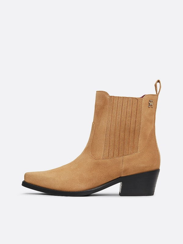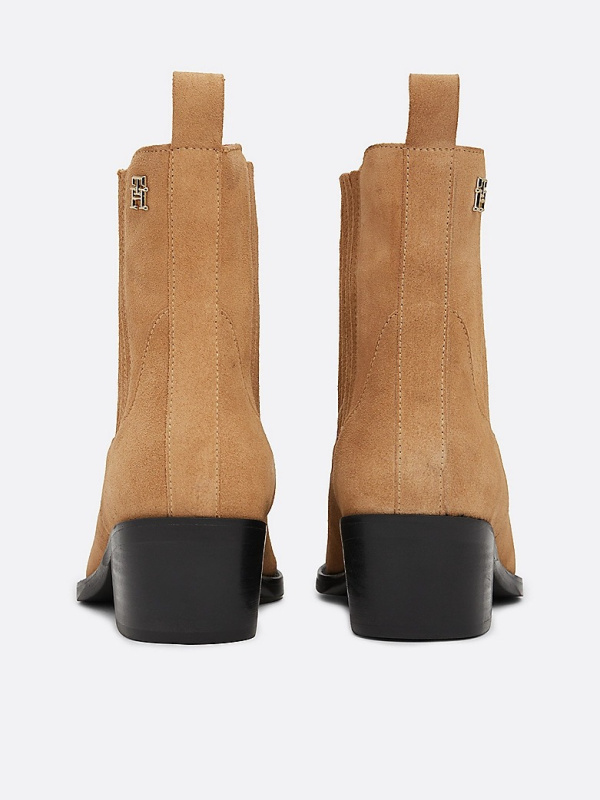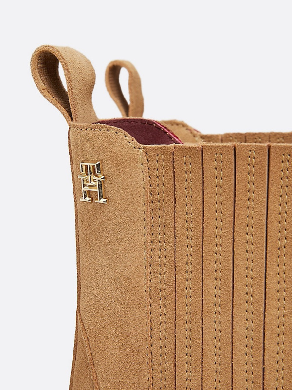 Ženske Tommy Hilfiger bež čizme od brušene kože s monogramom s petom