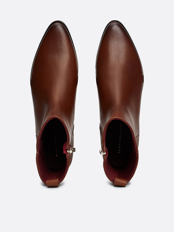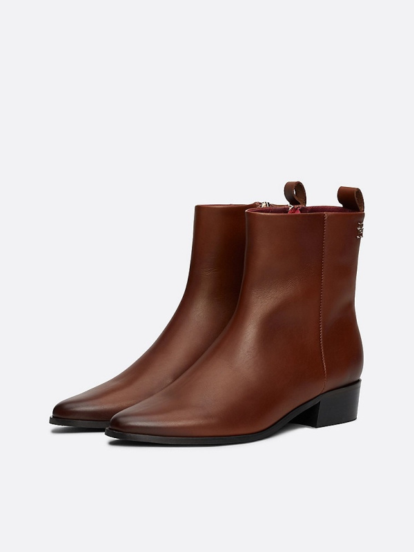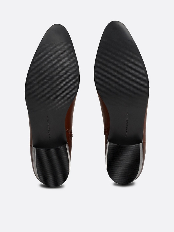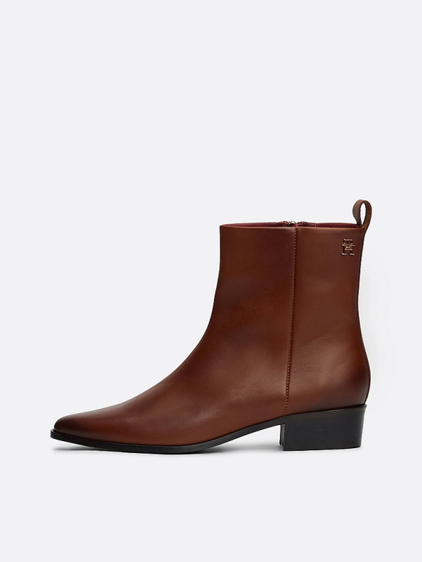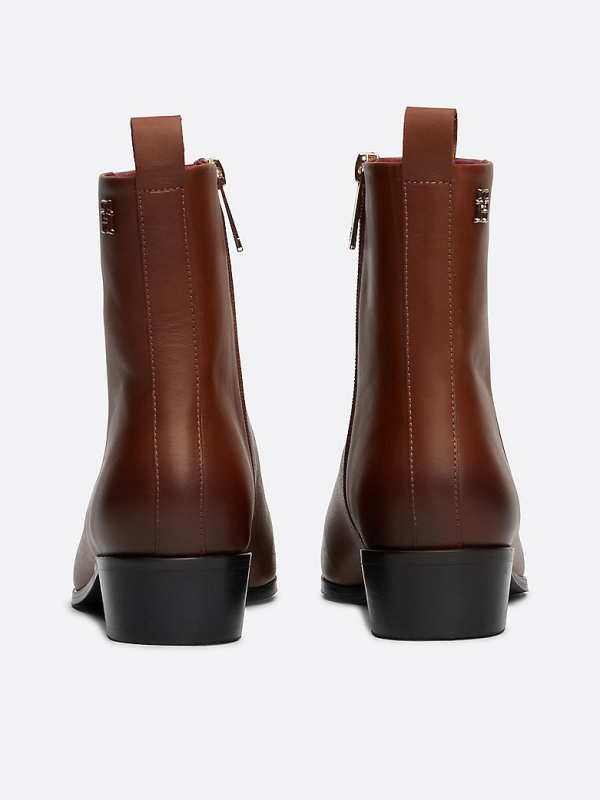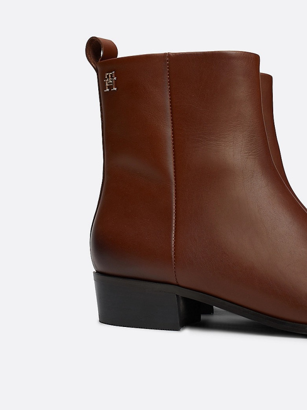 Ženske smeđe Tommy Hilfiger kožne kaubojske čizme s TH monogramom
