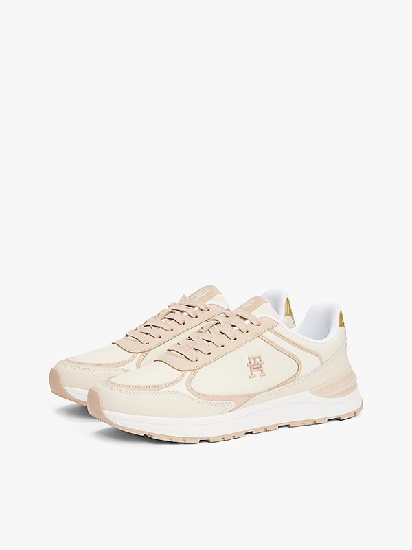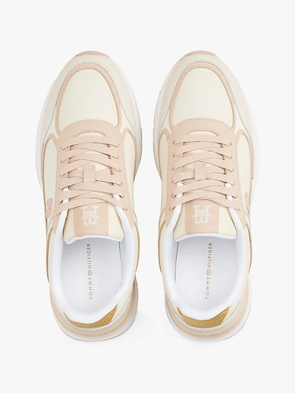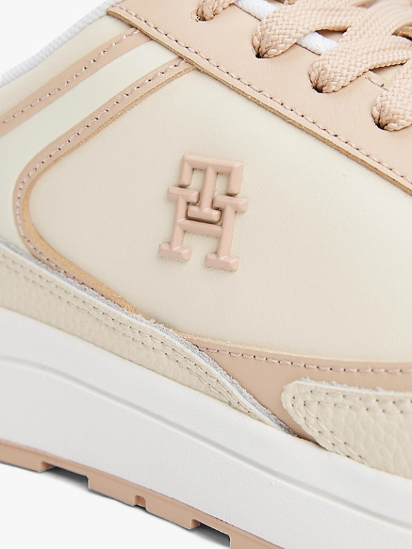 Ženske Tommy Hilfiger kožne monogram tenisice u kombinaciji svijetle bež i puder roze boje