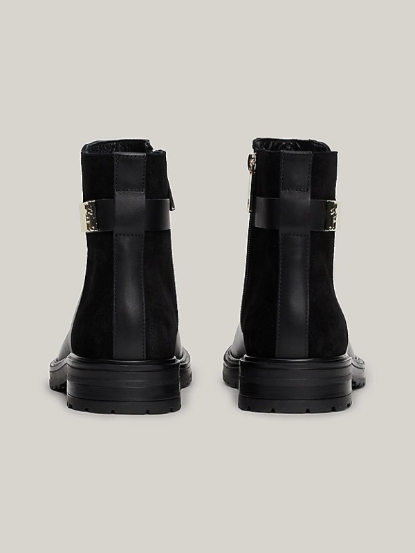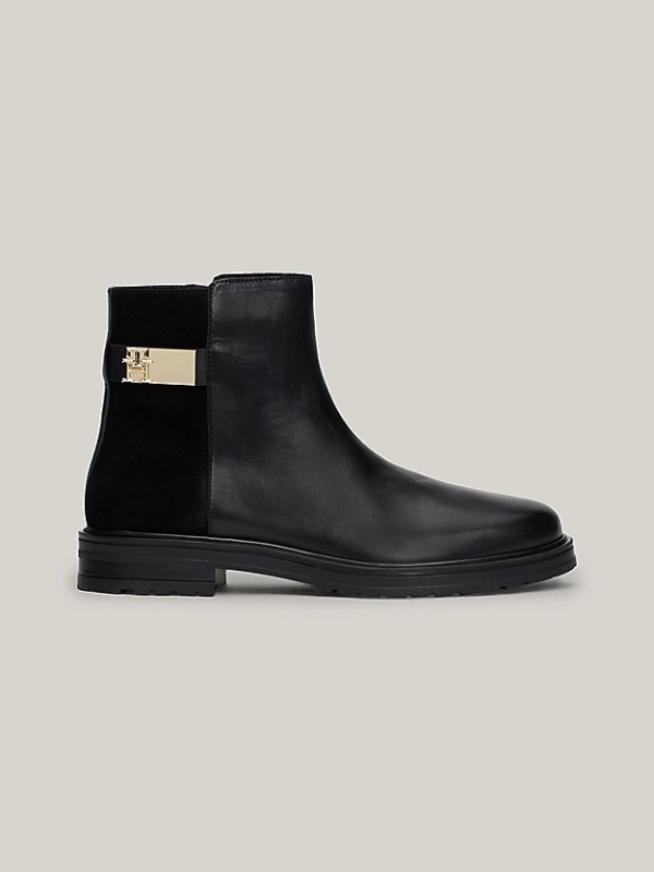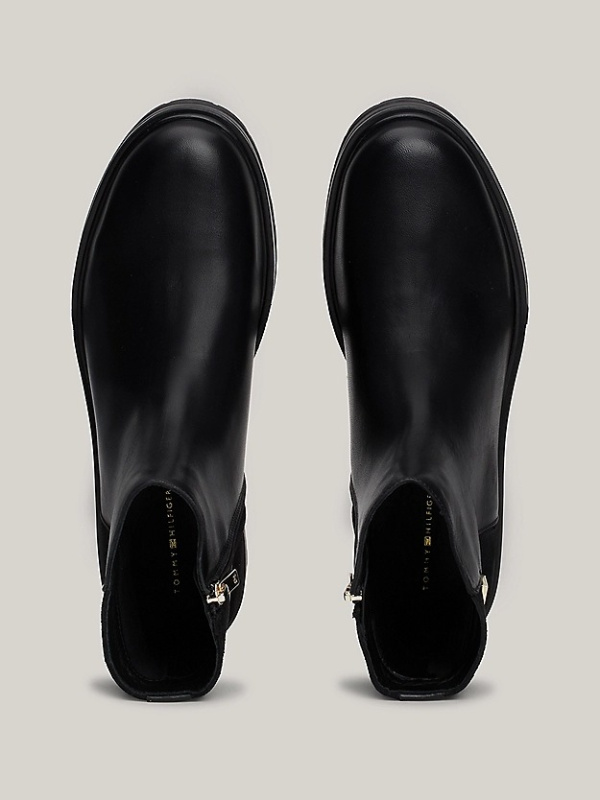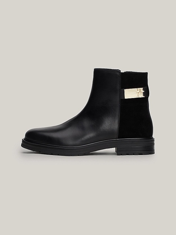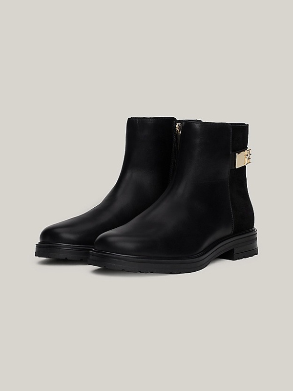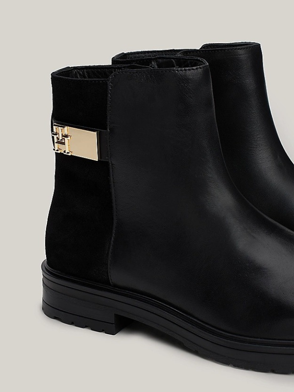 Ženske crne Tommy Hilfiger kožne gležnjače mješovite teksture