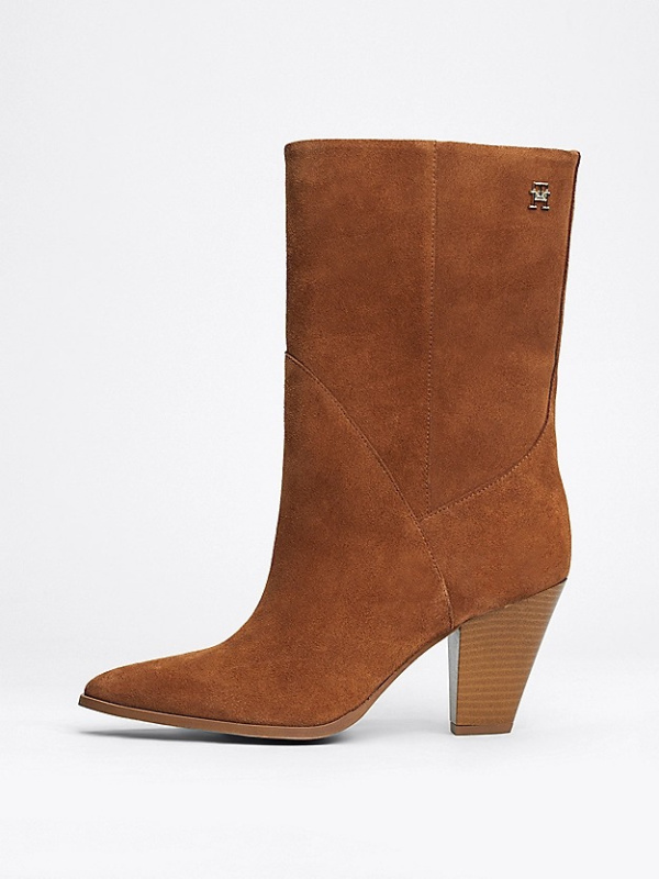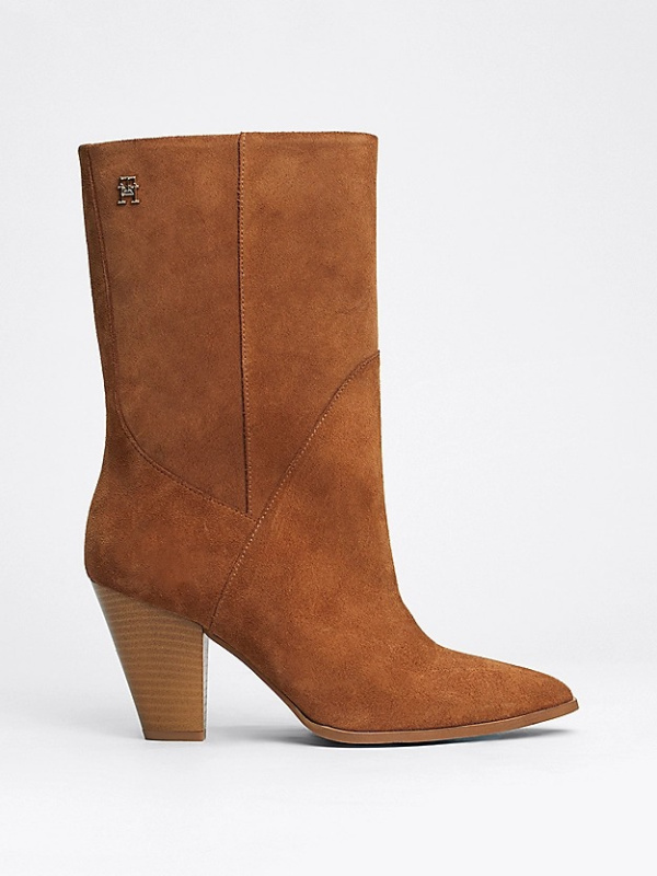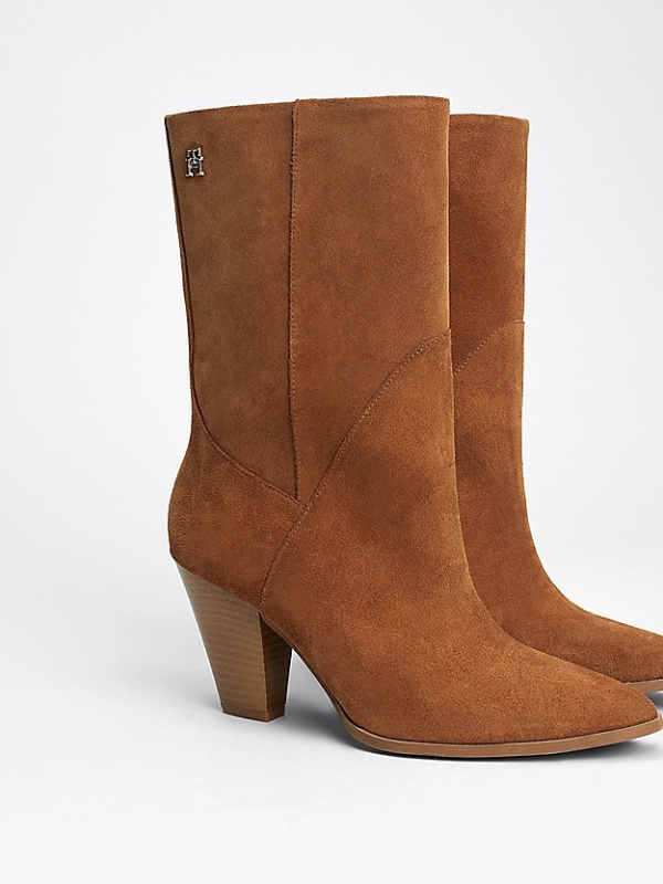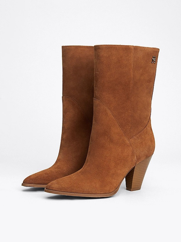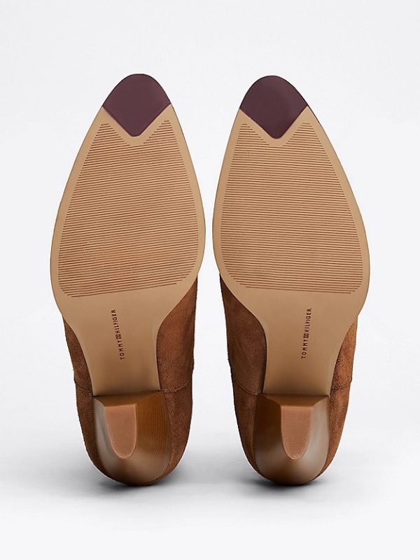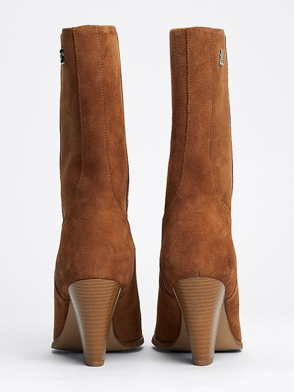 Ženske smeđe Tommy Hilfiger čizme od brušene kože