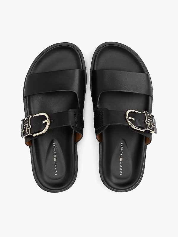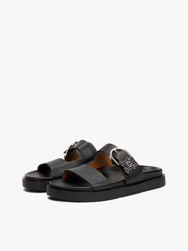 Ženske crne Tommy Hilfiger sandale s kopčama s logom