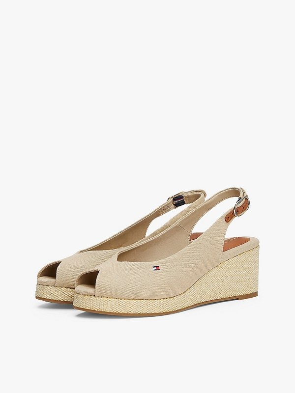 Ove pamučne platnene espadrile imaju siluetu s otvorenim prstima, na leđima, zajedno s klinastom petom koja elegantno podiže vaš izgled.