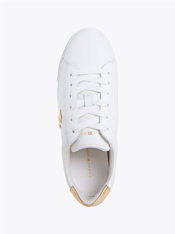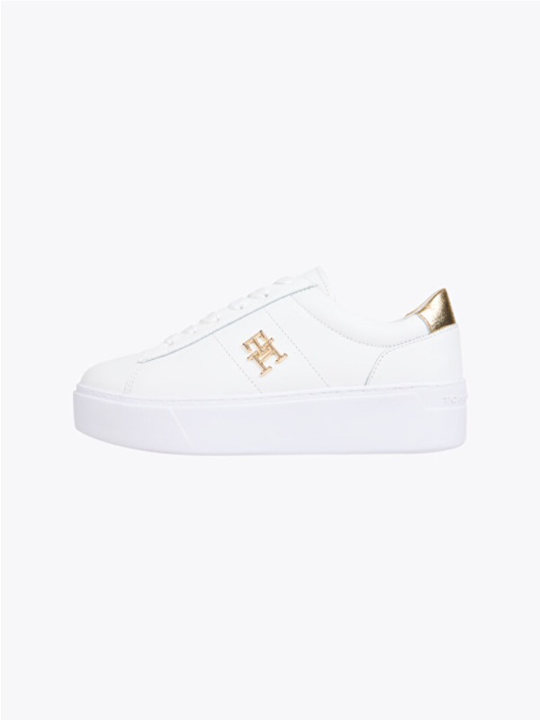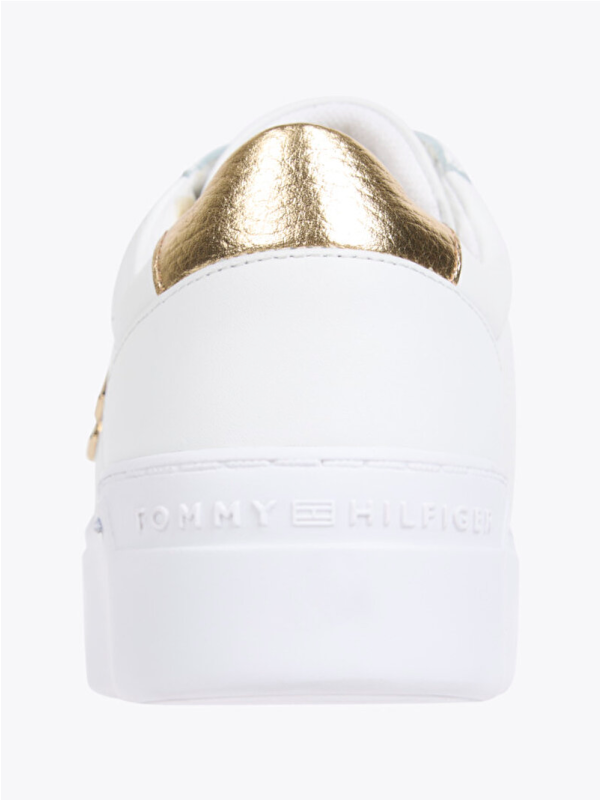 Ženske kožne bijele Tommy Hilfiger tenisice s platformom i zlatnim detaljima