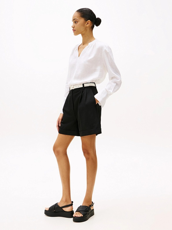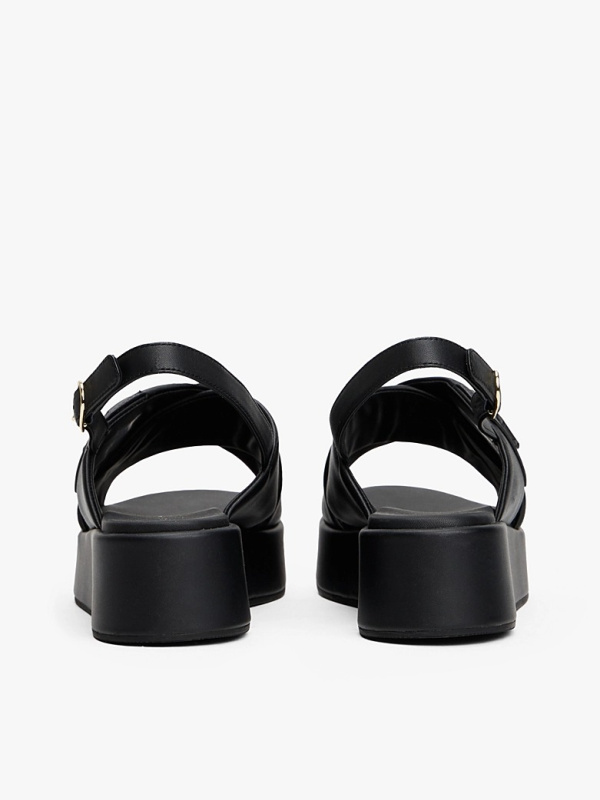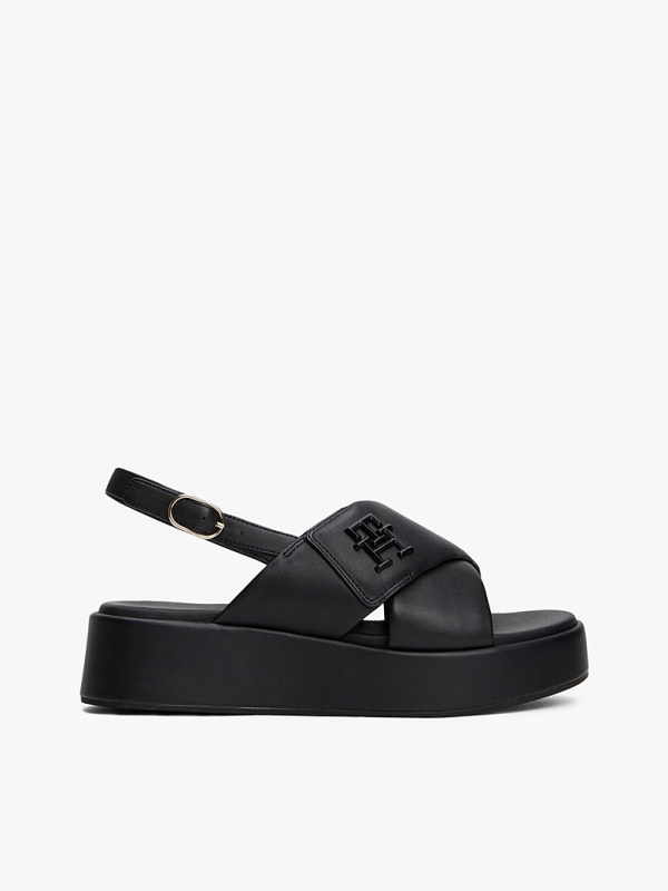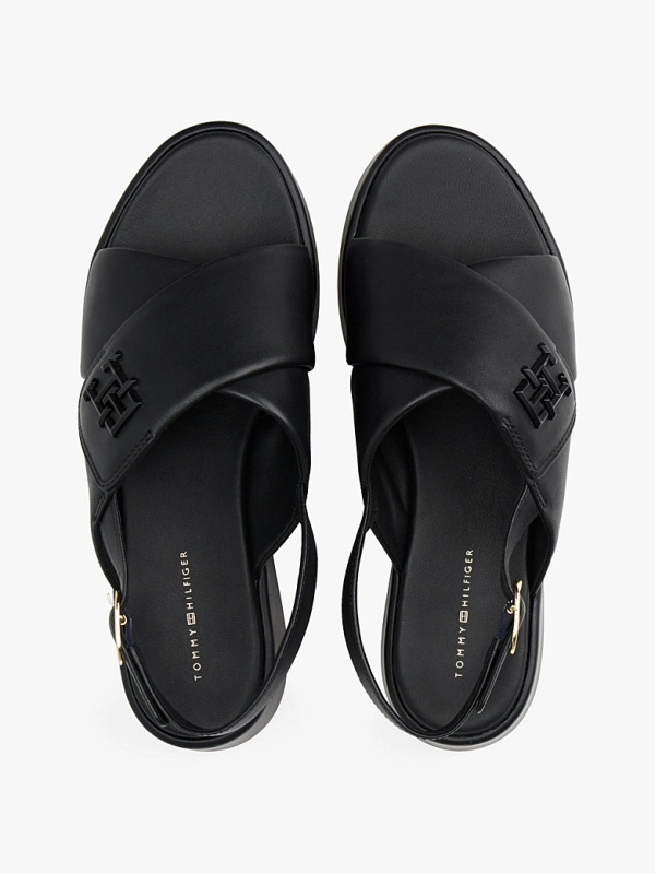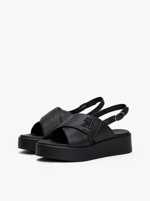 Ženske crne Tommy Hilfiger kožne sandale sa platformom