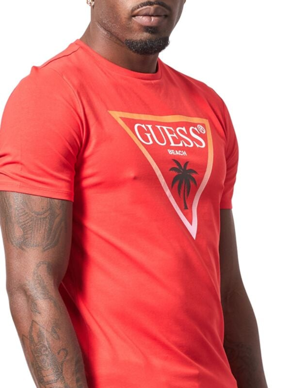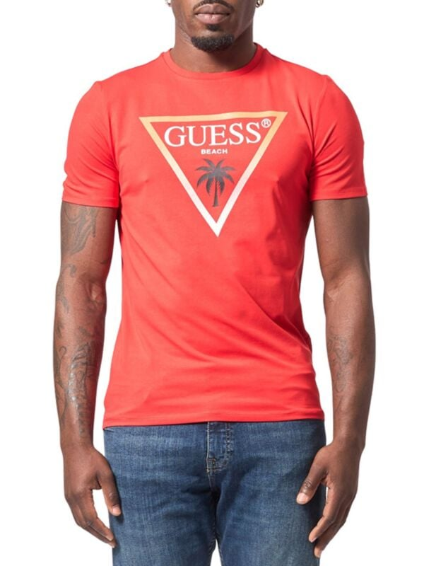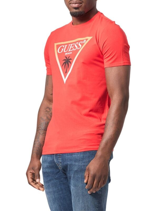 Muška narančasta Guess majica kratkih rukava s logo printom na prsima