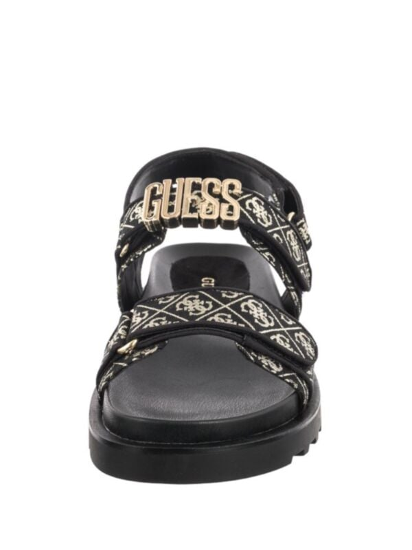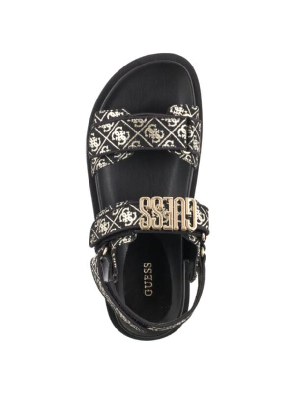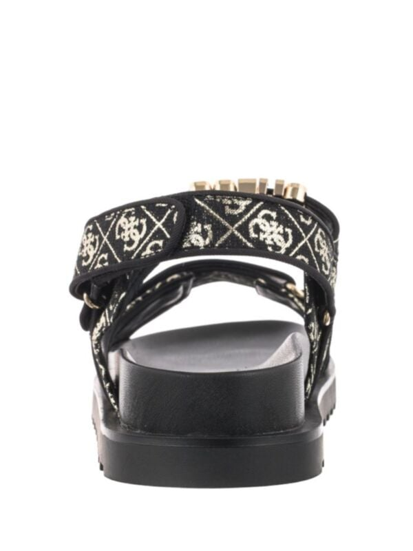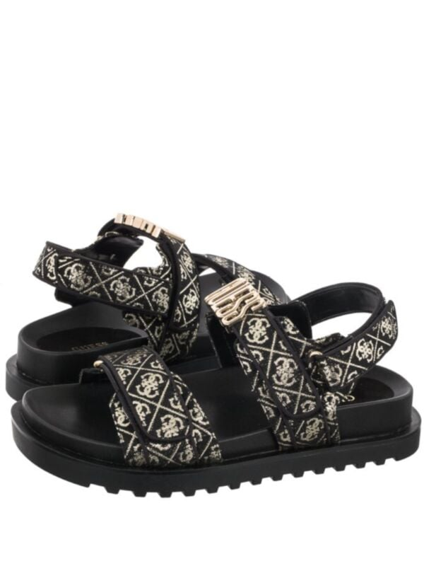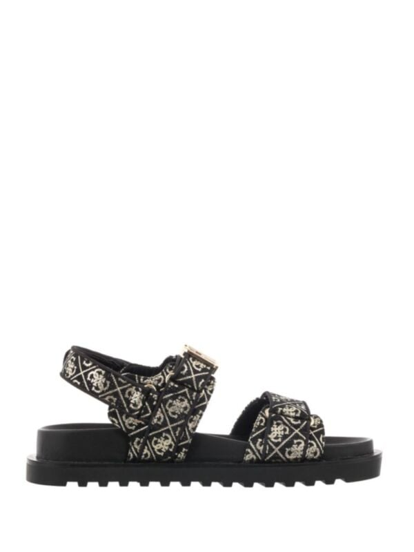 Ženske crne Guess Fabelis sandale s all-over printom u zlatnoj boji