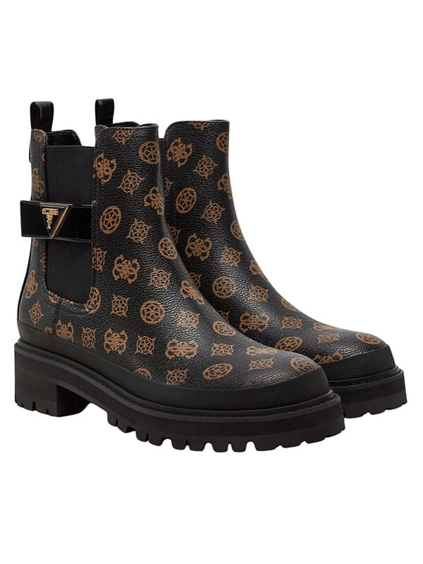 Ženske tamnosmeđe Guess Bensly plitke ravne chelsea čizme sa elastičnim panelima