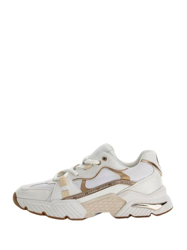 Ženske bijele Guess Carrli plitke tenisice s chunky đonom i zlatnim detaljima