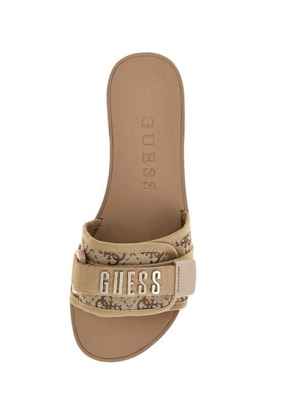 Ženske Guess Elyz4 bež ravne papuče s preklopnim remenom
