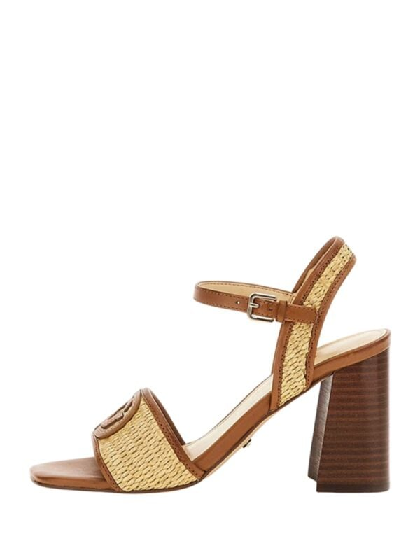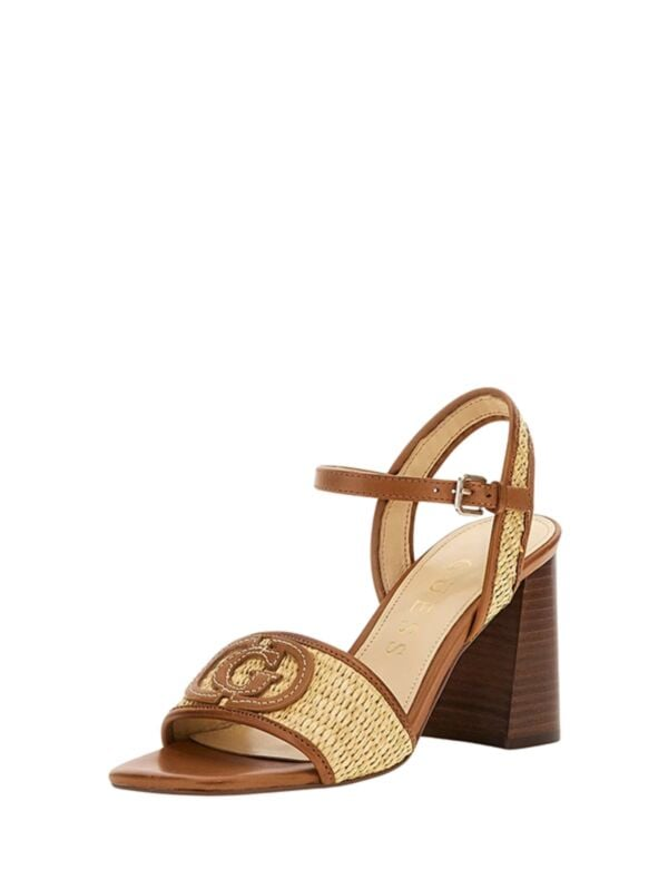 Ženske Guess Ganika bež-smeđe sandale s logom i širokom potpeticom visine 8.5 cm