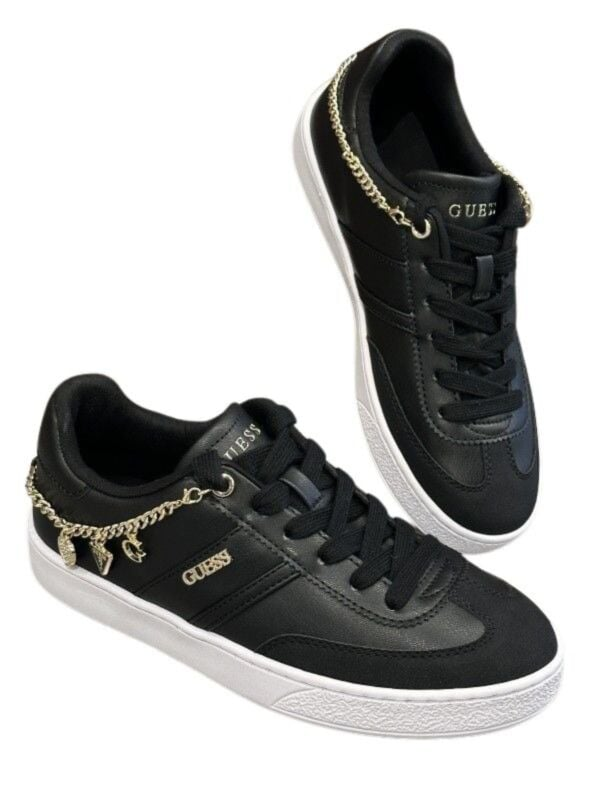 Ženske crne Guess tenisice s dekorativnim zlatnim lancem