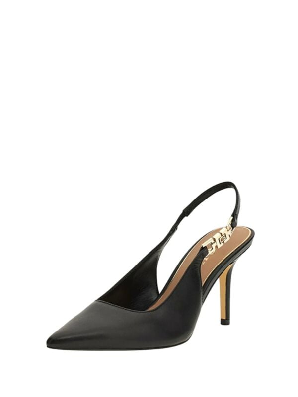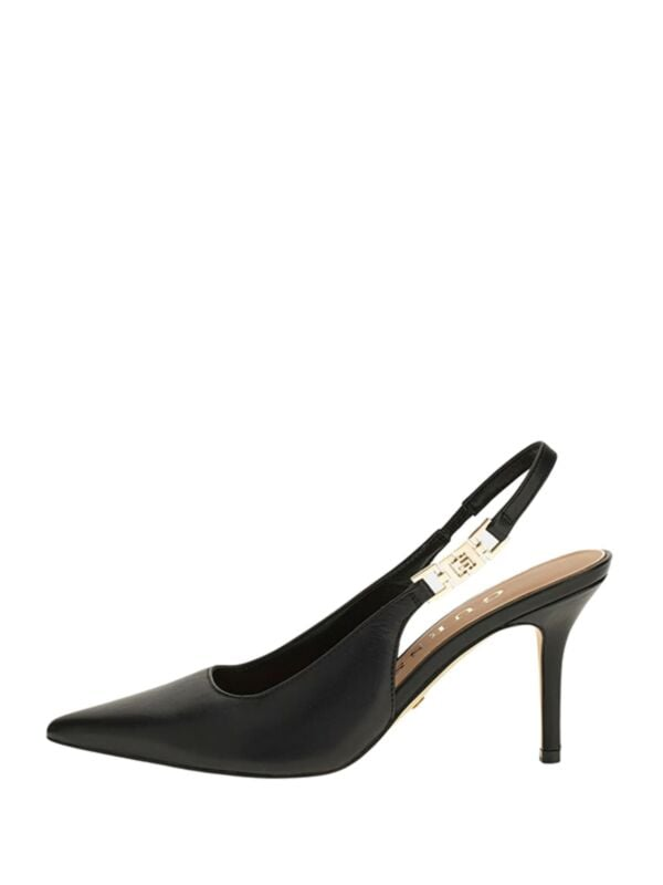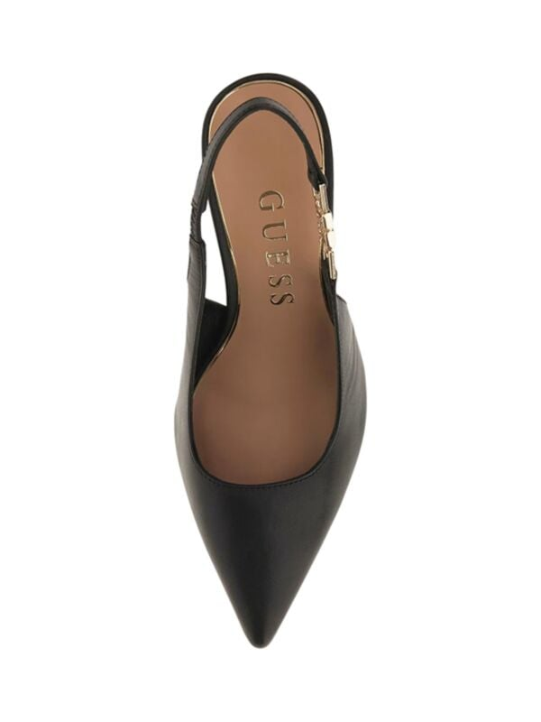 Ženske crne kožne Guess cipele sa špicastim pristima i otvorenom petom