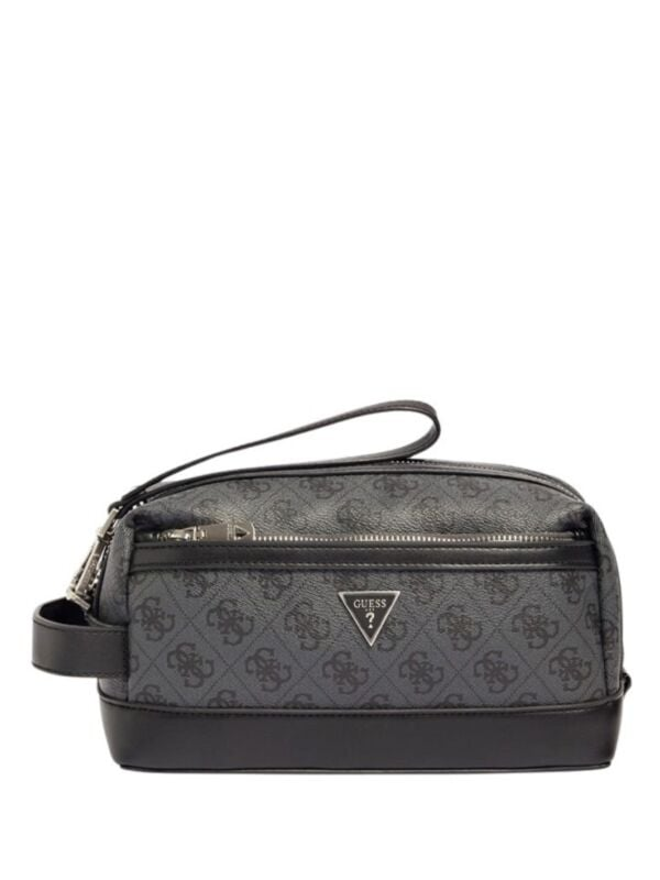Muška crna Guess torba-neseser sa zipom, vanjskim džepom i privjeskom oko ruke