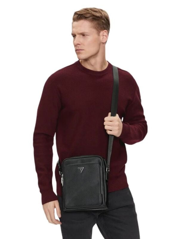 Muška crna Guess Milano torbica s remenom za nošenje preko ramena ili oko tijela