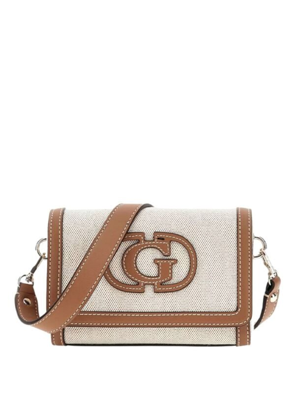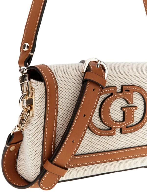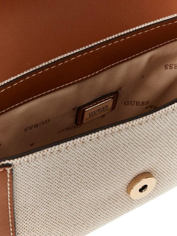 Ženska Guess Sebina bež krem torbica s smeđim detaljima i kaišem