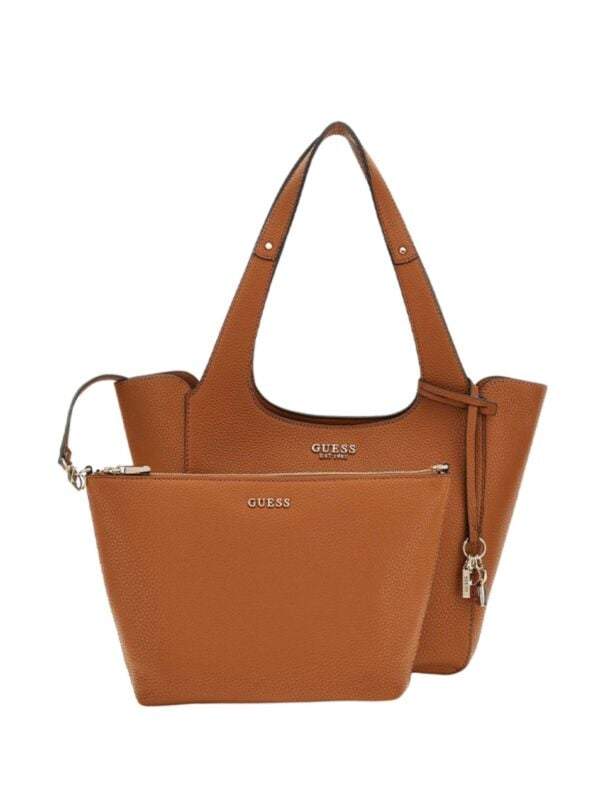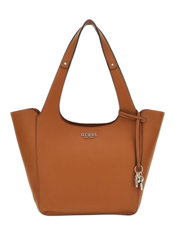Ženska smeđa Guess Calista torba s ručkom i privjeskom