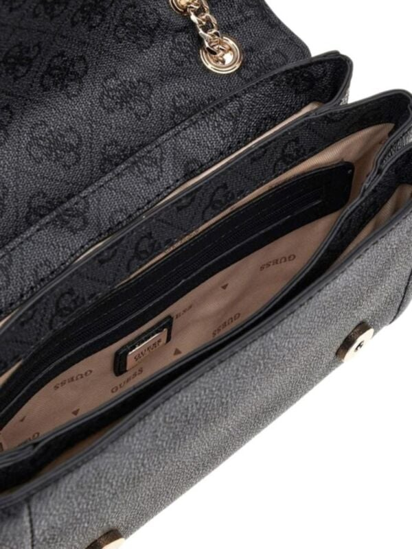 Ženska crna Guess Noelle elegantna torbica s preklopom i all-over monogramom