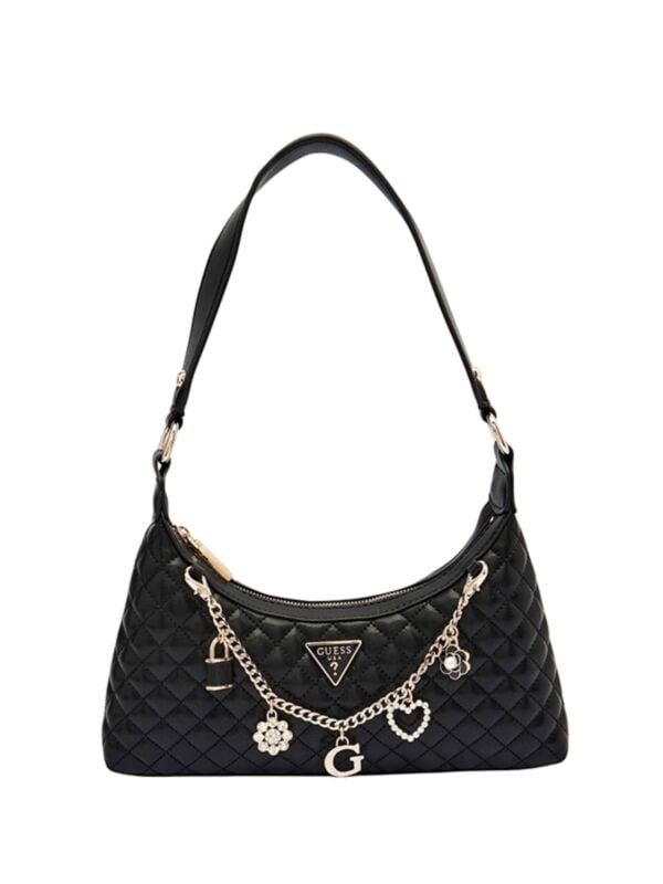 Ženska crna Guess Everlee torbica s logo lancem