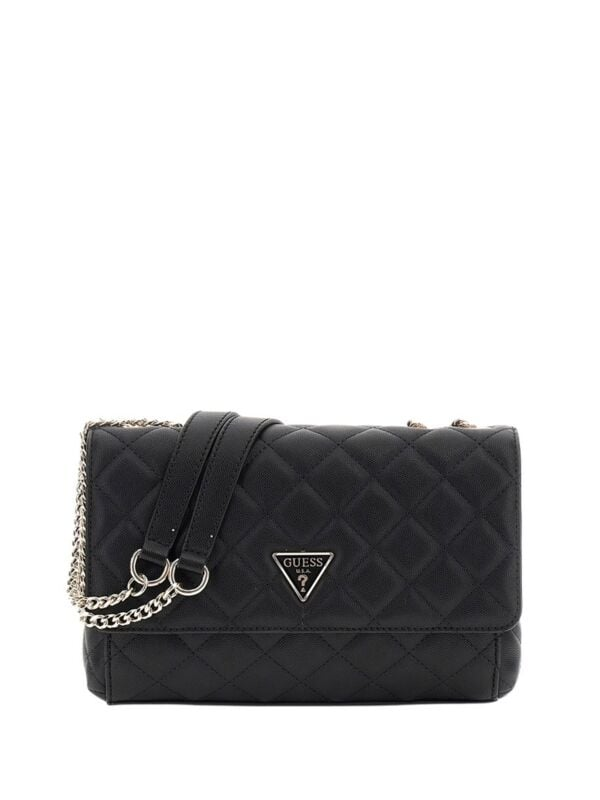 Ženska crna prošivena Guess Carly torbica na preklop