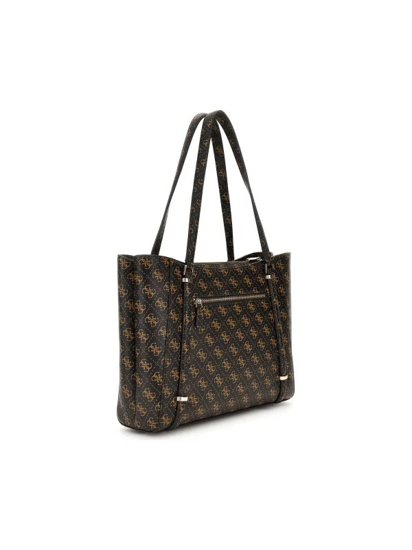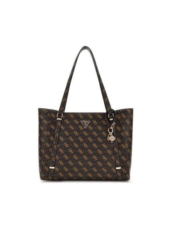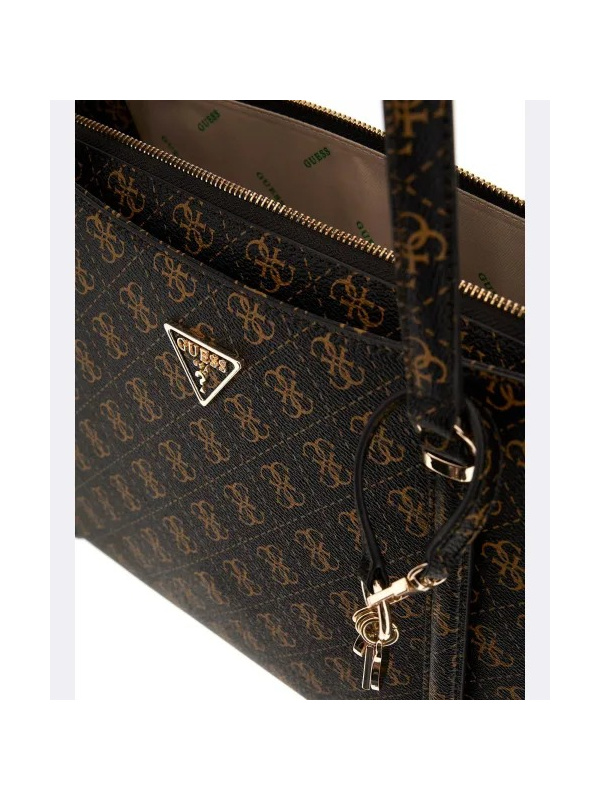 Ženska crna Guess torba sa smeđim all-over monogramom