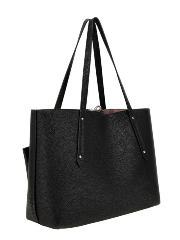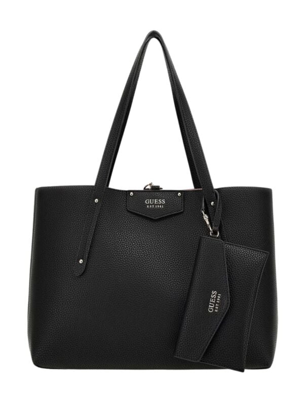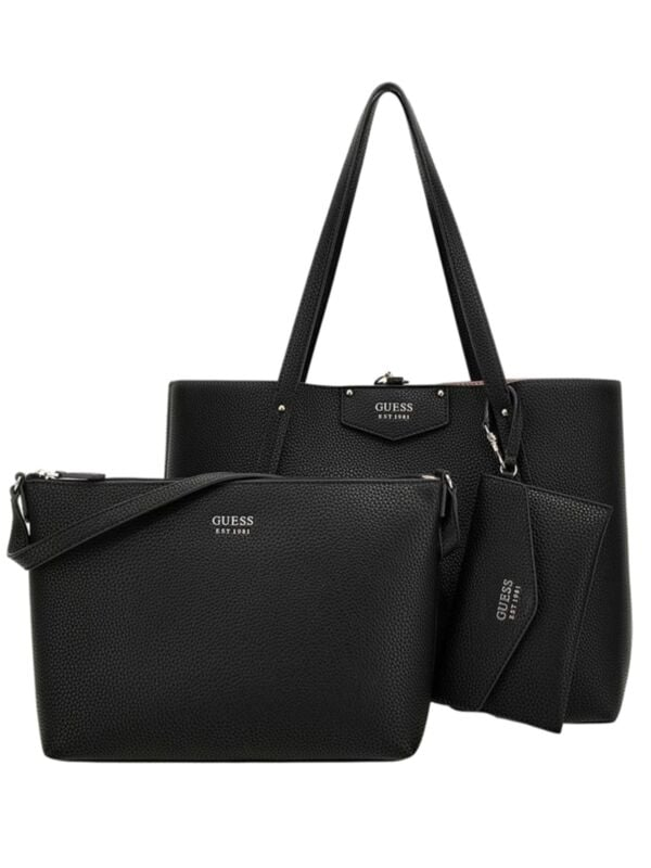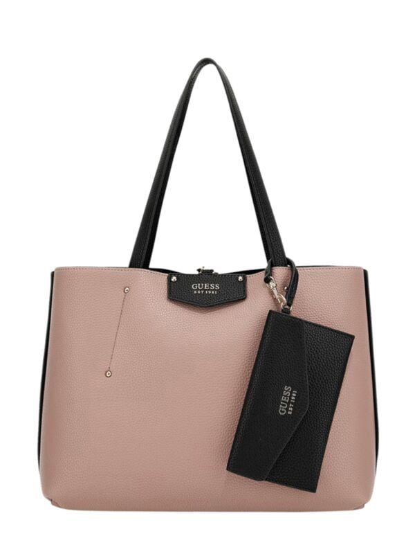 Ženska velika crna Guess Eco Brenton Tote 4u1 torba s dva lica (crno i puder rozo), manjom torbom i novčanikom