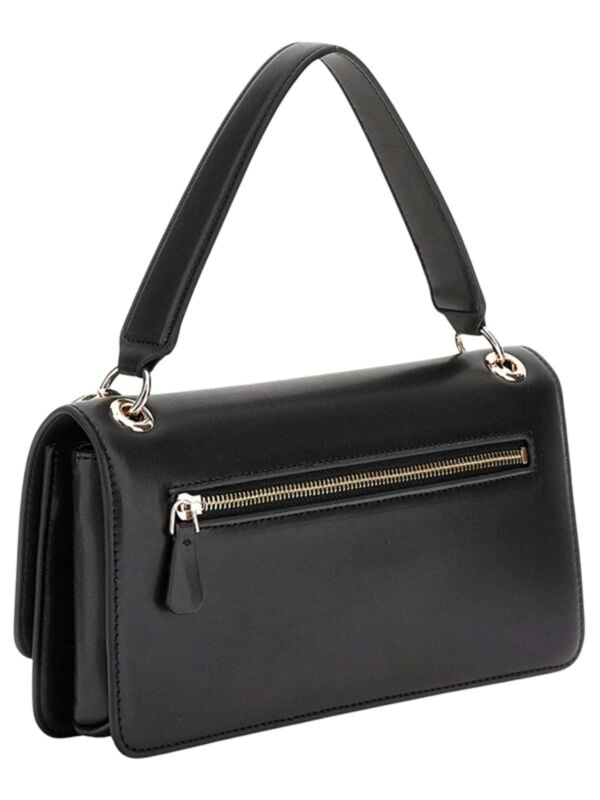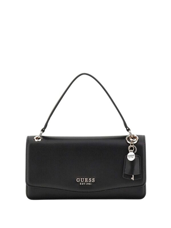 Ženska crna Guess Evaine preklopna torbica s kratkom ručkom i privjeskom