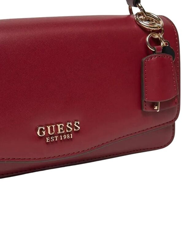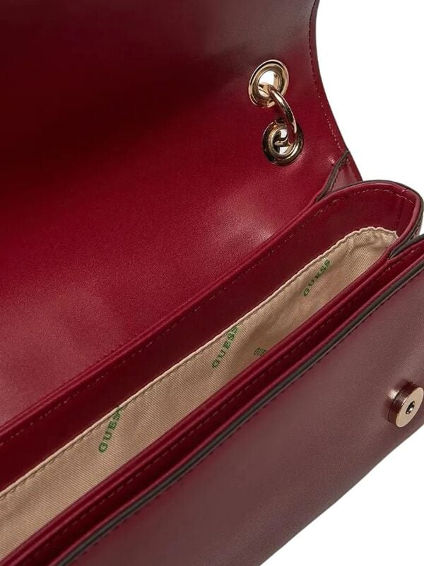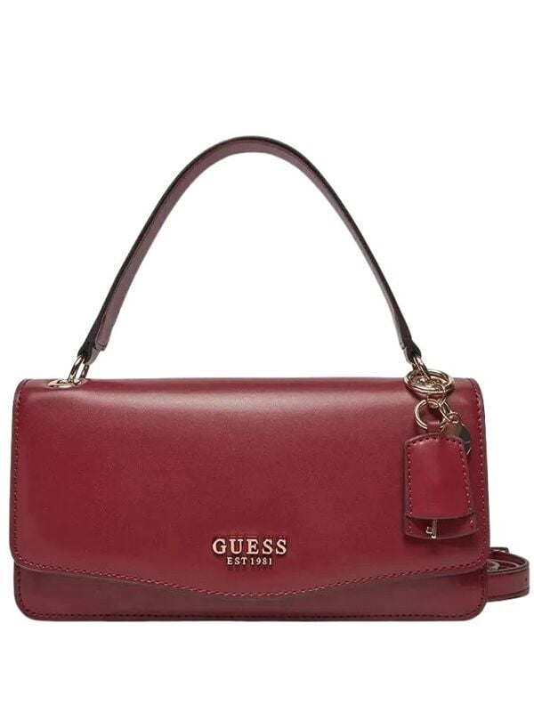 Ženska Guess Evaine elegantna tamnocrvena torbica s kratkom ručkom i privjeskom