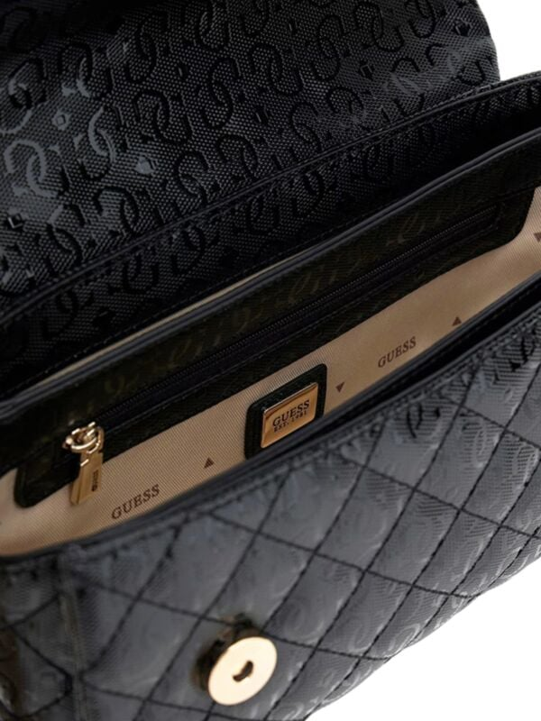 Ženka crna prošivena preklopna Guess torba s ručkom