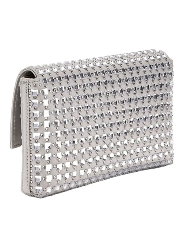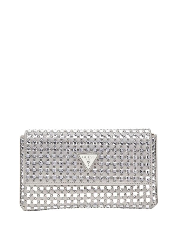 Ženska srebrena Guess Zalina preklopna torbica s logo znakom i cirkonima