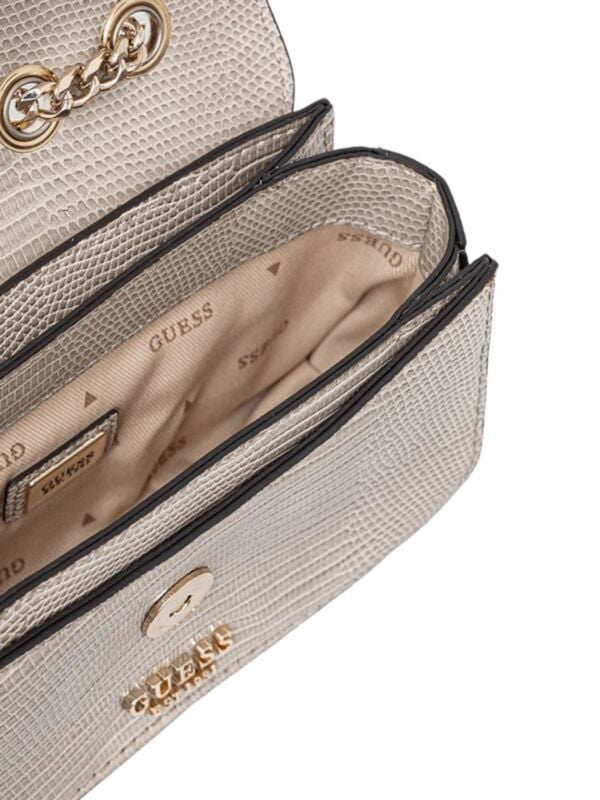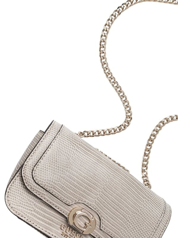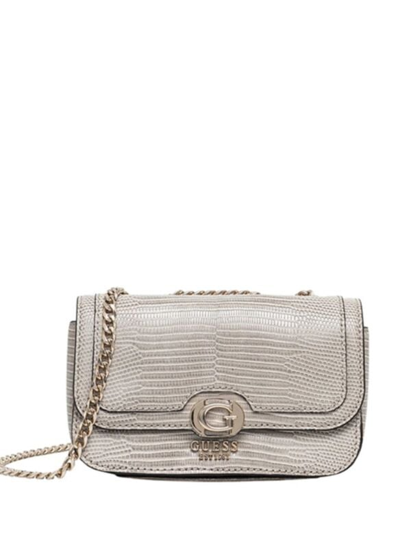 Ženska bež Guess Orlina preklopna torba kroko torbica s lancem