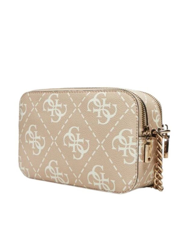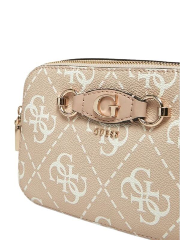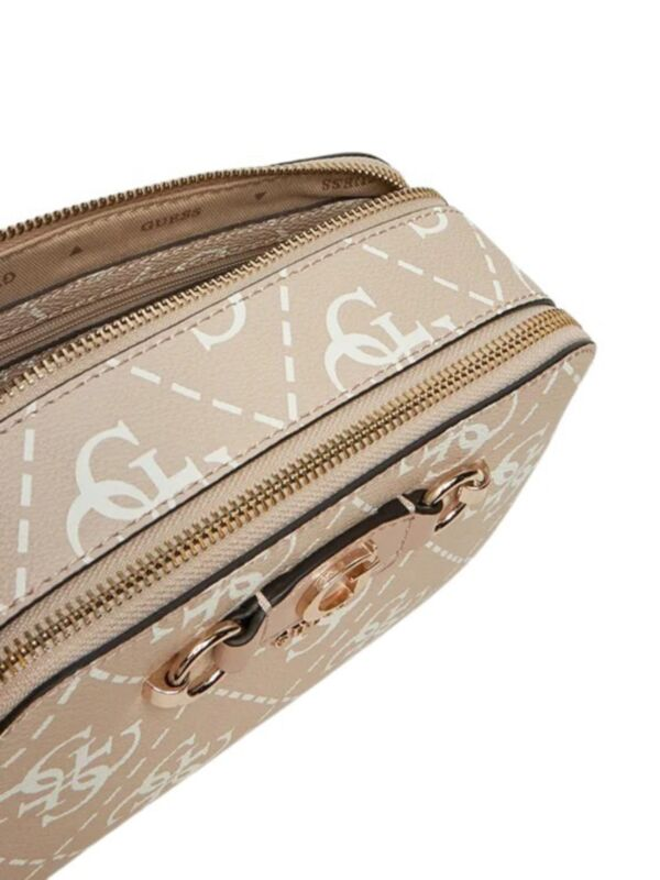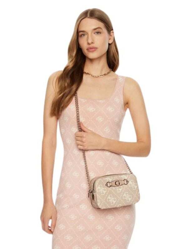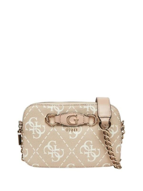 Ženska bež-roza Guess Izzy logo torbica s lancem i dvije zip pregrade