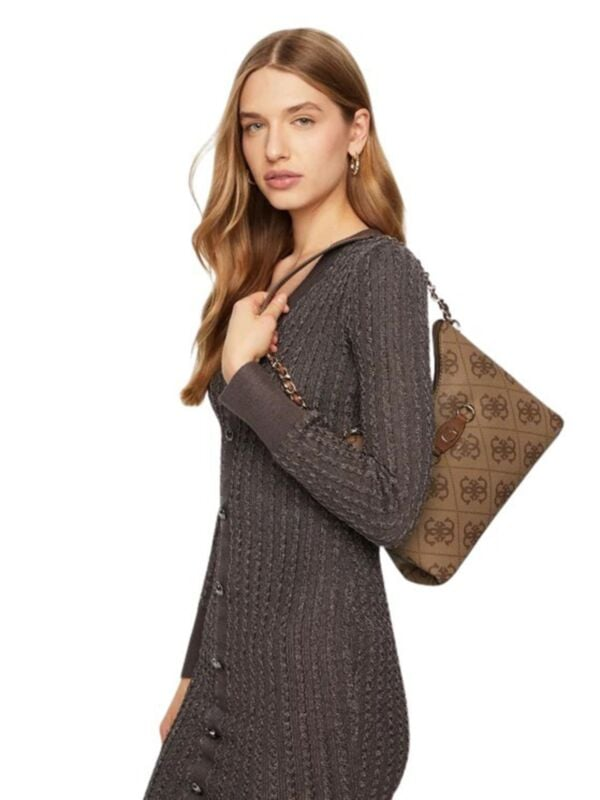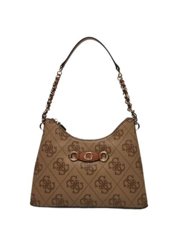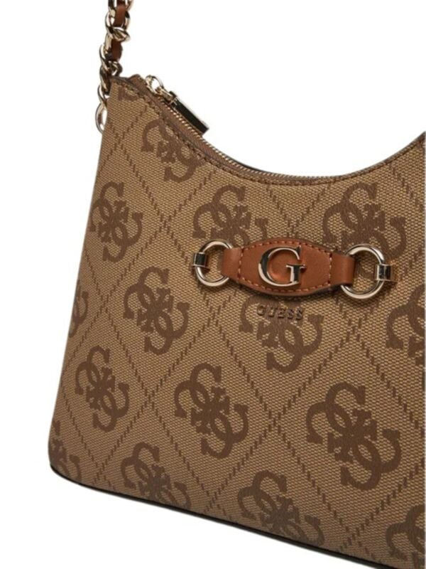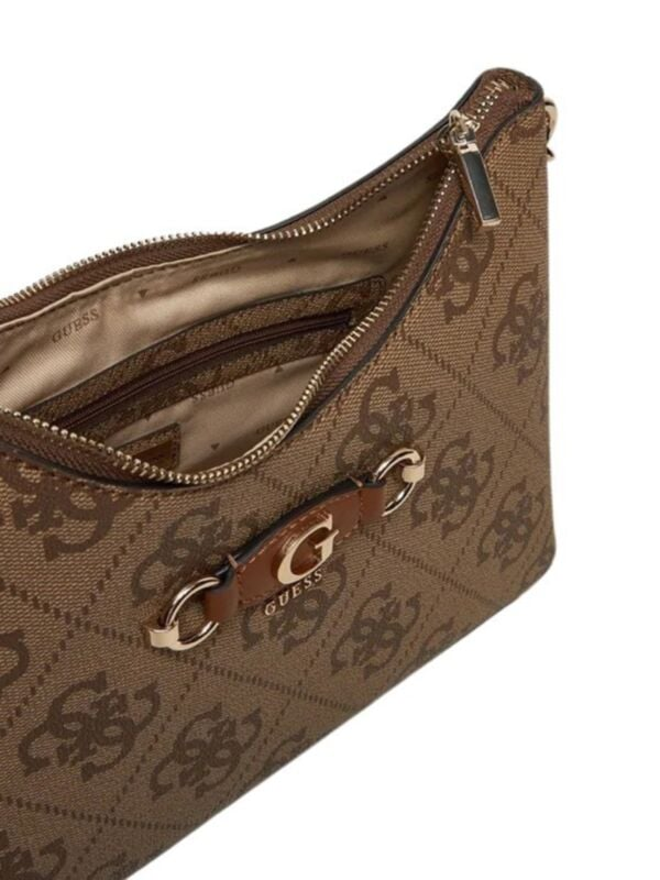 Ženska smeđa Guess Izzy Top torbica s all-over monogramom