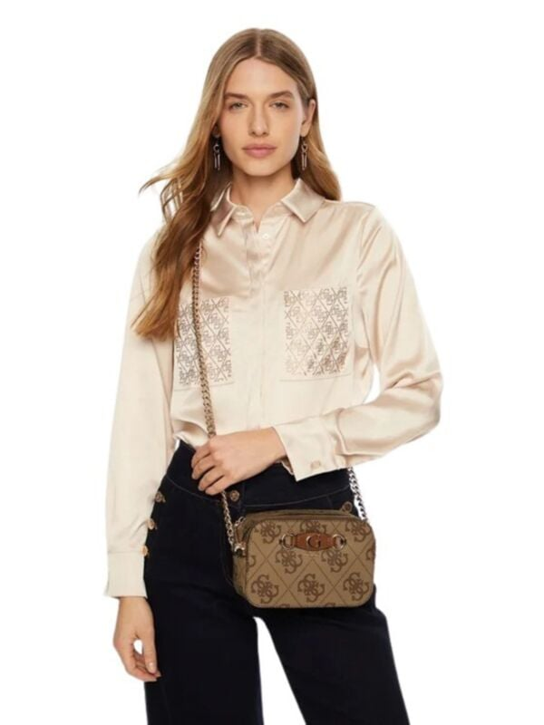 Ženska smeđa Guess Izzy Camera torbica s dvije pregrade