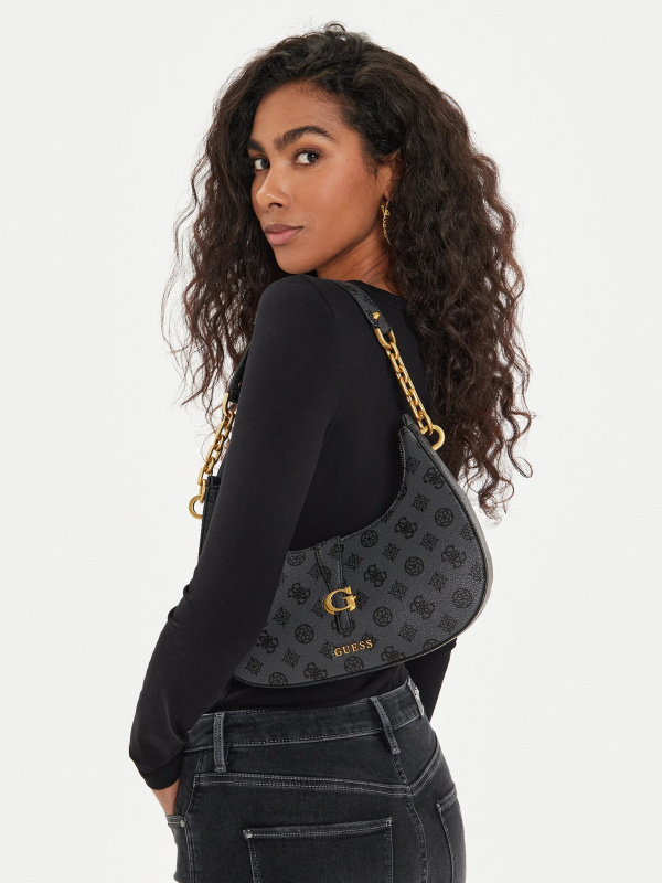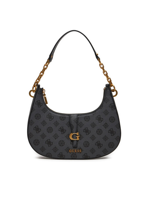 Ženska siva Guess Kuba torba na rame sa zlatnim detaljima i logom