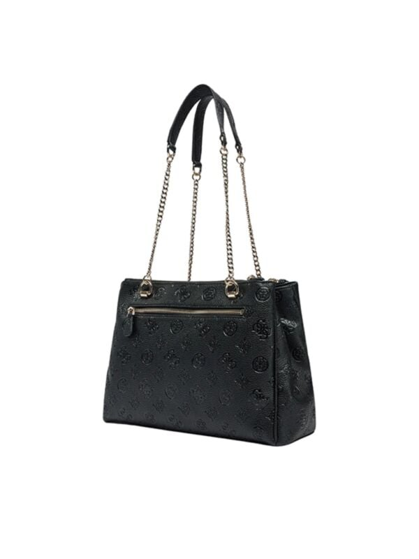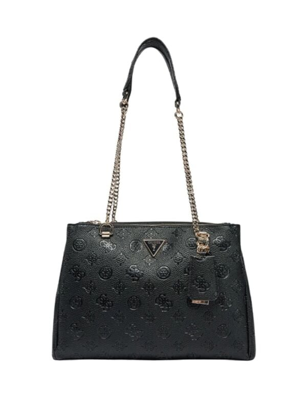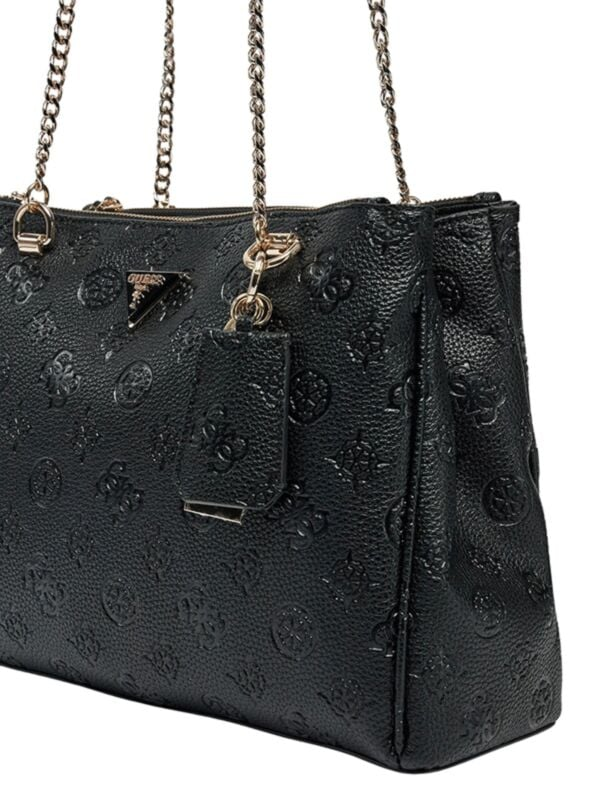 Ženska crna Guess torba s privjeskom i all-over reljefnim monogramom