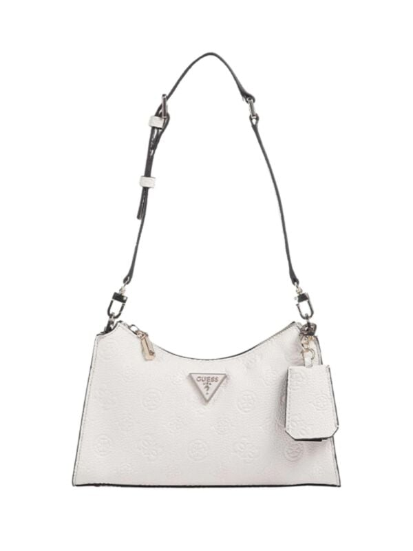 Ženska Guess bijela torbica na zip kopčanje s privjeskom