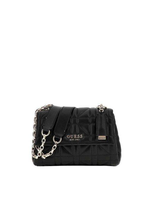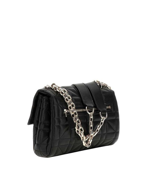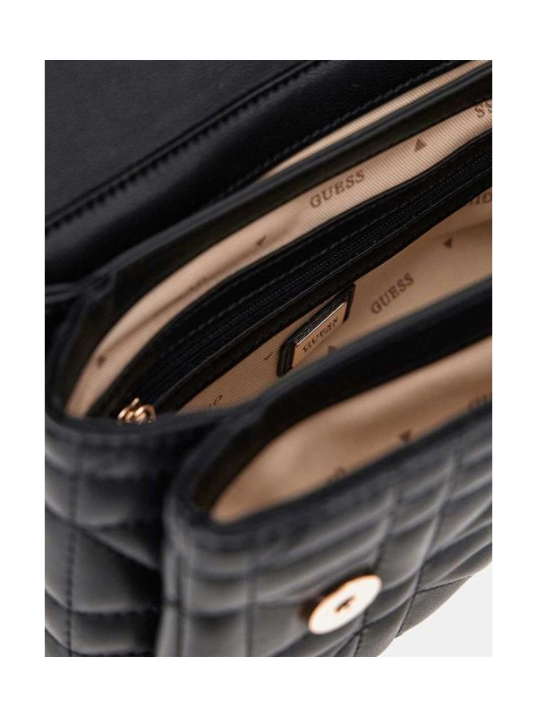 Ženska crna Guess Assia prošivena preklopna torbica sa duplom pregradom