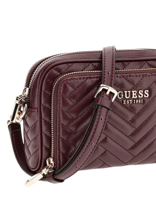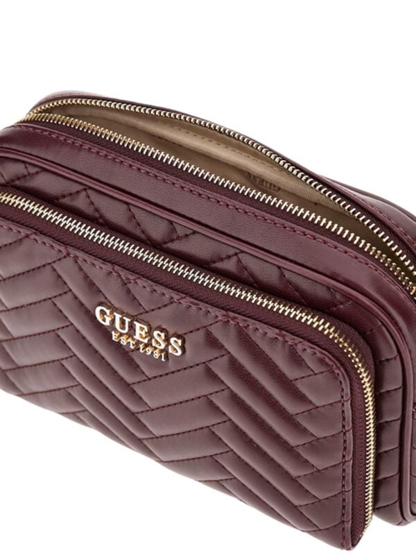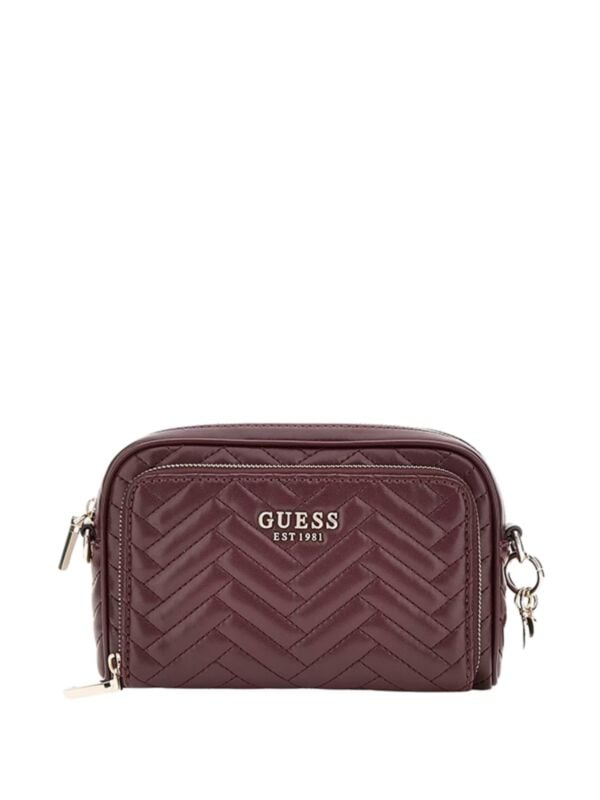 Ženska bordo Guess Anning Camera prošivena torbica istobojnim remenom