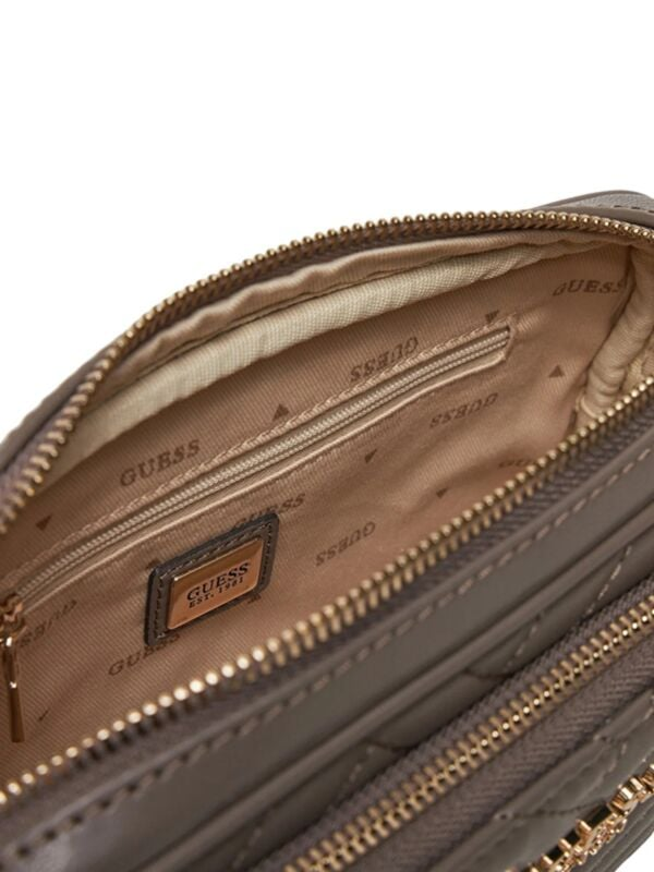 Ženska smeđa Guess Anning Camera prošivena torbica s remenom u istoj boji