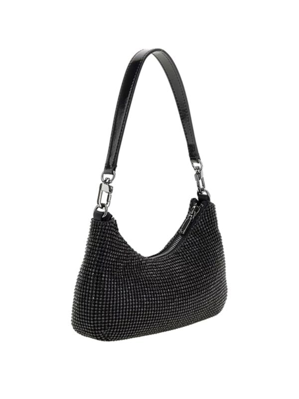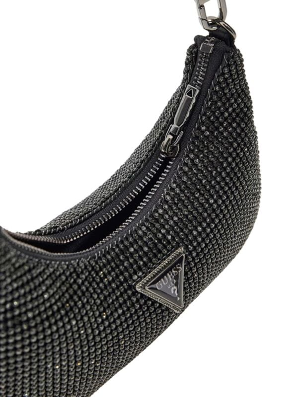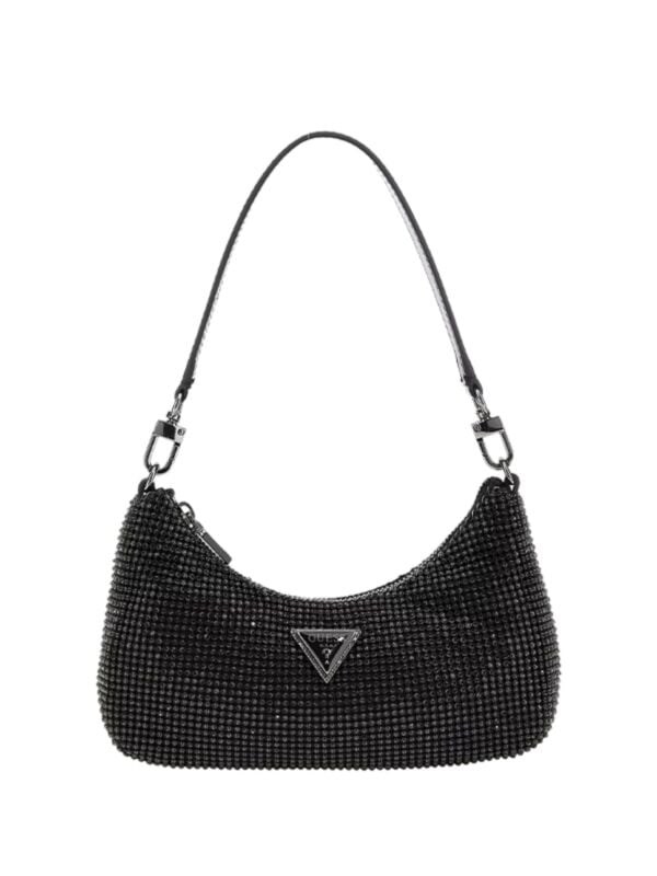 Ženska crna Guess Zalina torbica s cirkonima i logo znakom