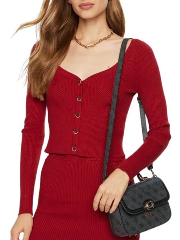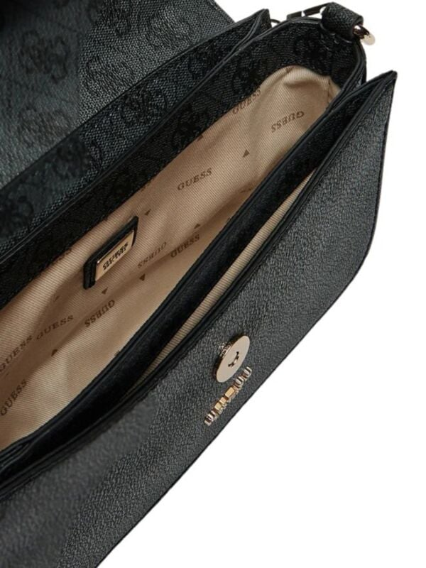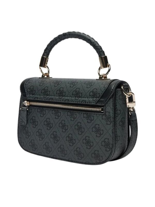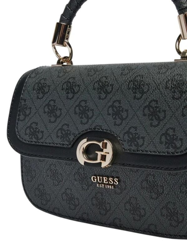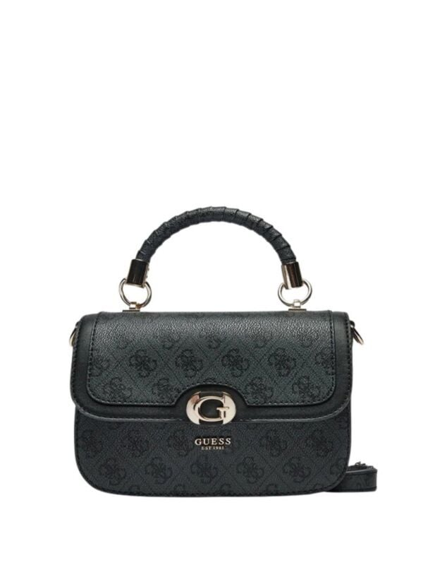 Ženska tamnosiva Guess Orlina Top preklopna torbica s ručkom, kaišem i all-over logo printom
