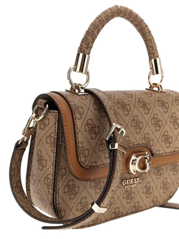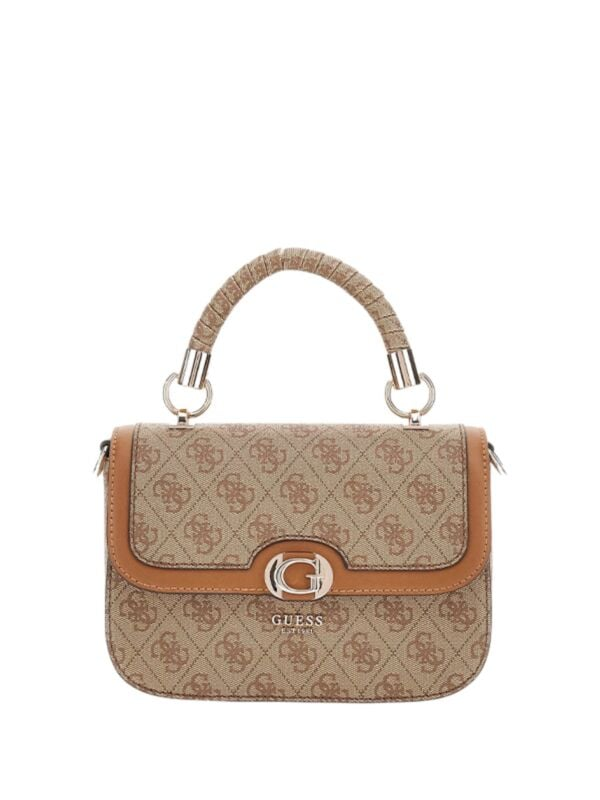 Ženska smeđa Guess Orlina torbica na preklop s ručkom, kaišem i all-over monogramom