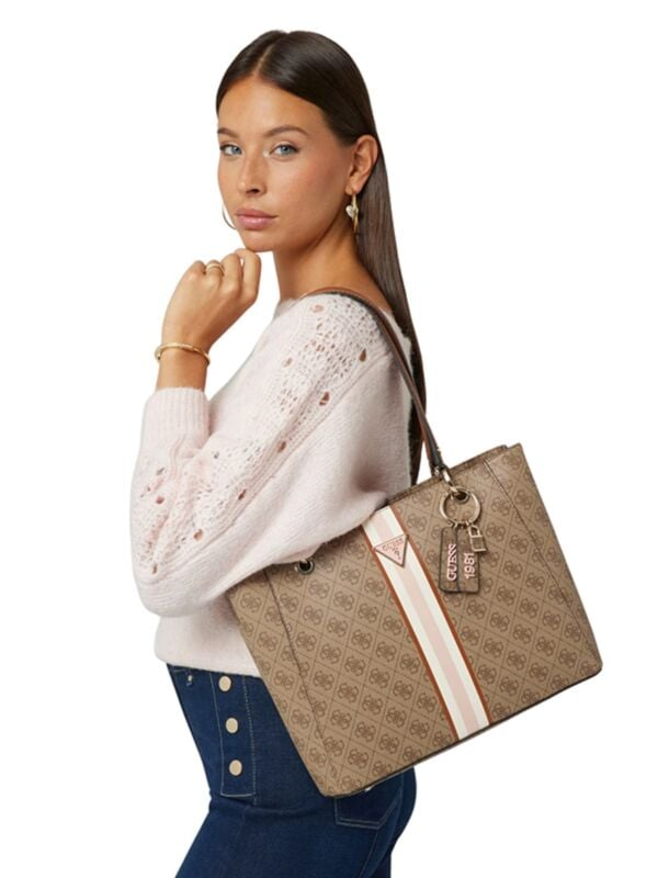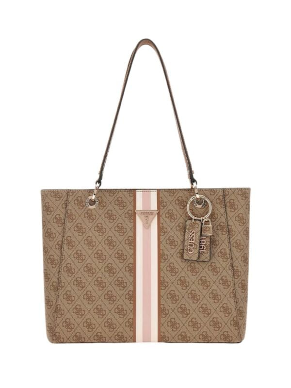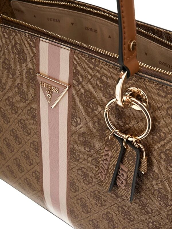 Ženska smeđa Guess torba s dugačkim ručkama i privjeskom