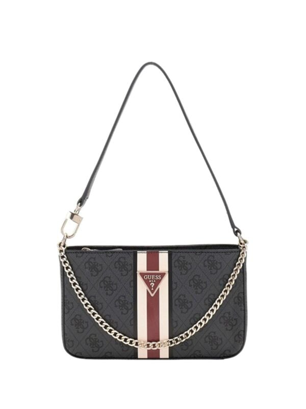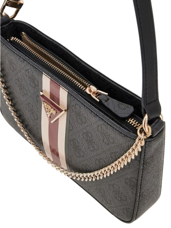 Ženska siva Guess torbica s 4G logo printom, kratkom ručkom i lancem