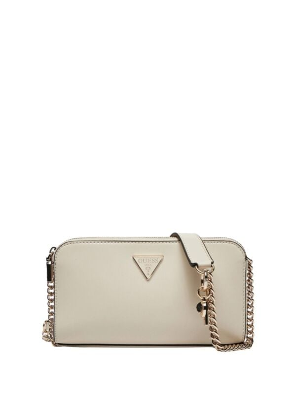 Ženska bež Guess Daryna torbica sa zipom i kaišem s lancem