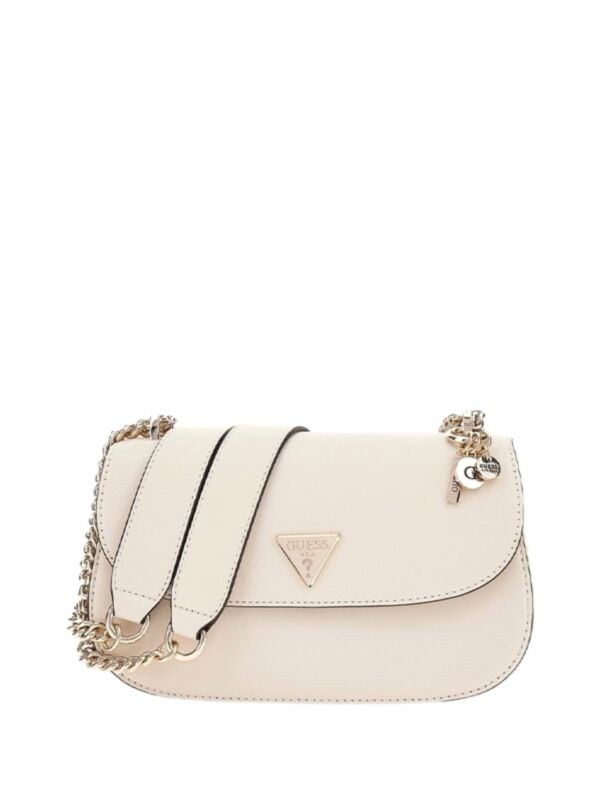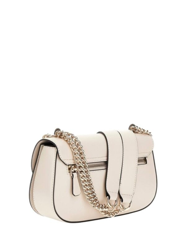 Ženska Guess Daryna bež preklopna torbica s remenom, s lancem