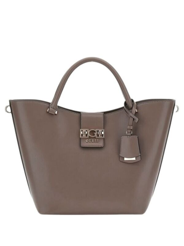 Ženska smeđa Guess torba s ručkom i privjeskom
