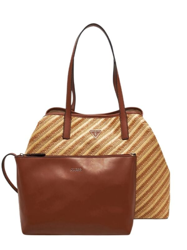 Ženska Guess Vikky 2u1 torba s pletenim detaljima u kombinaciji bež i smeđe boje